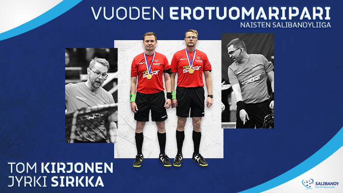 Joukkueiden kapteenien äänestämä kauden erotuomaripari naisten Salibandyliigassa: Tom Kirjonen – Jyrki Sirkka