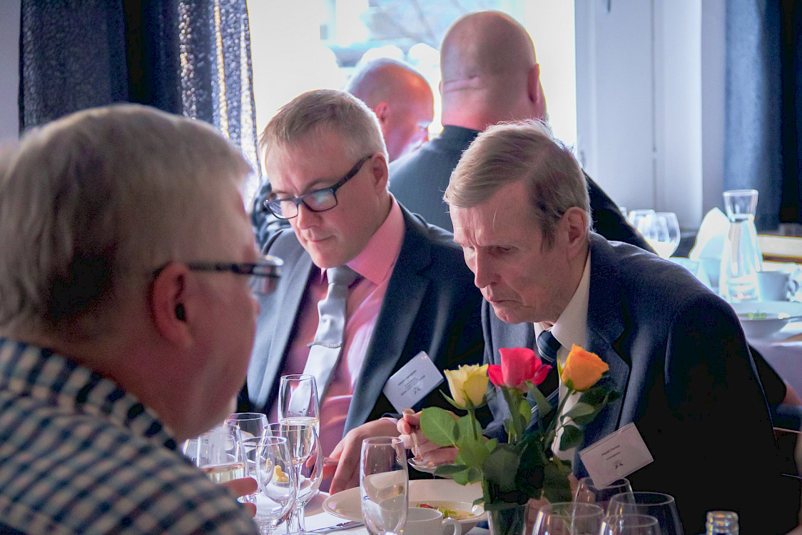 Kuvassa oikealla Pentti kerhomme 25. vuosijuhlassa huhtikuussa 2019.