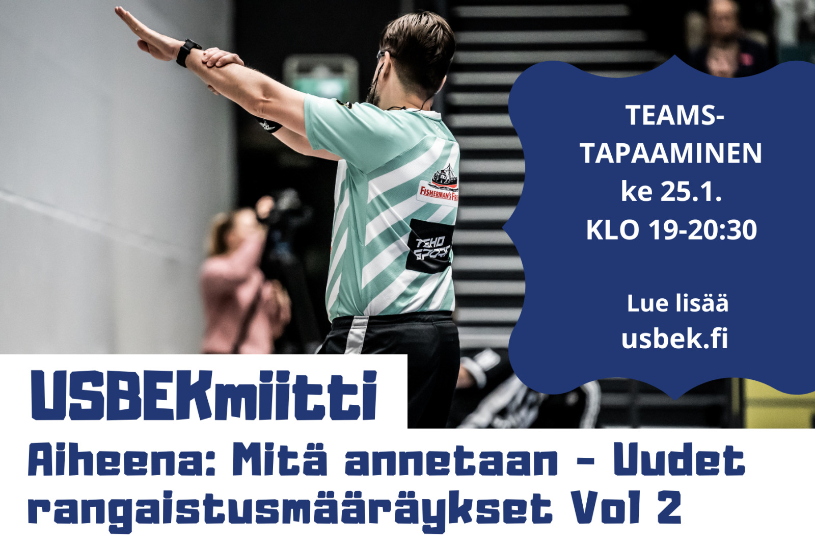 Syksyn ensimmäinen miitti keräsi hyvää palautetta ja aikakin loppui kesken. Siitä syystä jatkamme samalla genrellä: Videoita, pohdintaa ja sääntöperusteita. USBEKmiitistä saat vertaistukea ja oppia erotuomariurallesi, joten tervetuloa linjoille!