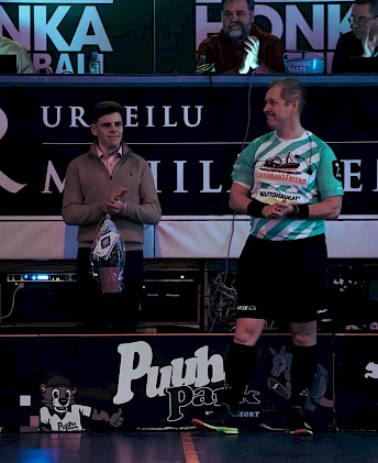Oilers-Classic ottelun alussa Vesa kukitettiin kerhomme toimesta. Onnea suuresti Vesalle tästä upeasta pyöreästä luvusta! Hetki menee ennen kuin seuraava alueemme tuomari pääsee samaan.
