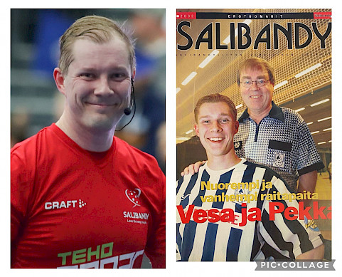 vasen Salibandyliiton Flickr, oikea Salibandylehden kansi 6/2002 (alunperin kuvan ottanut Markku Huoponen)